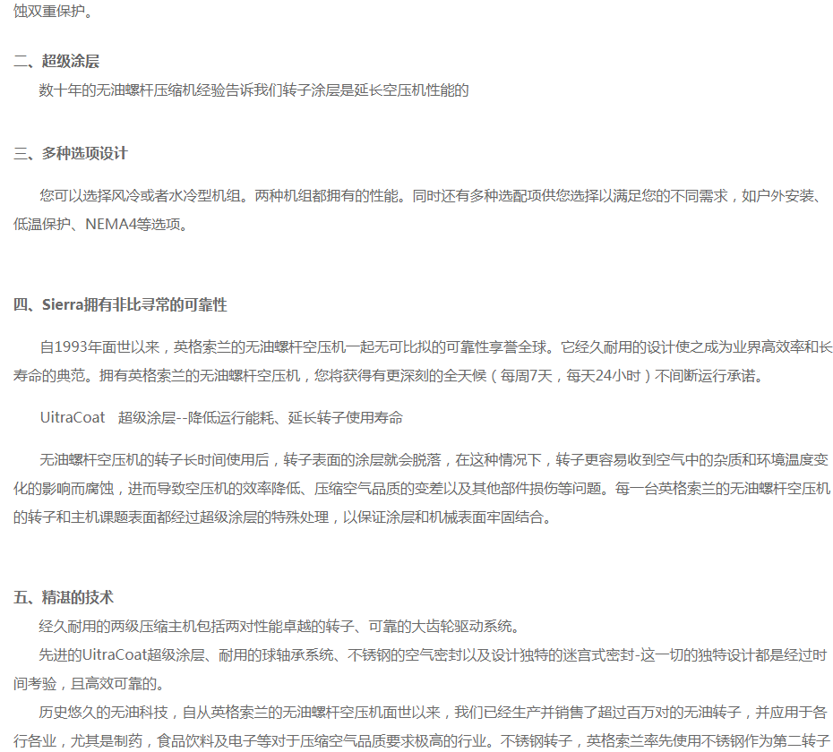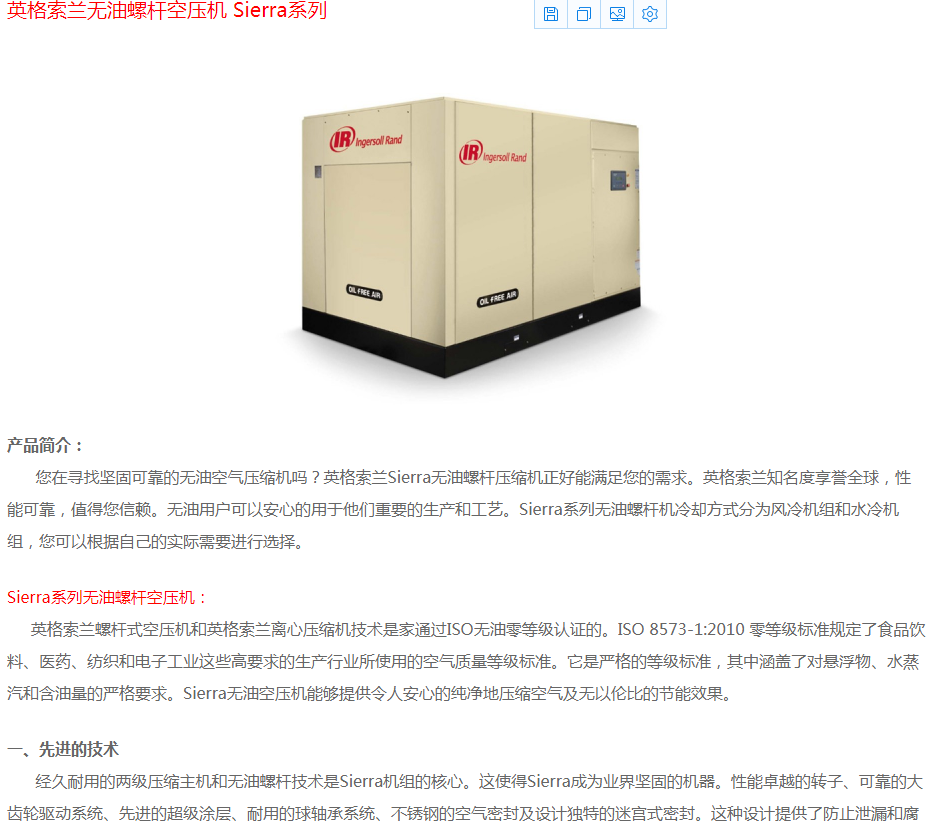 英格索蘭無油空壓機Sierra系列